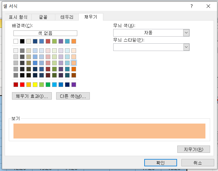서식에 들어가서 채우기나 글꼴 등 자유자재로 설정 후 확인 버튼